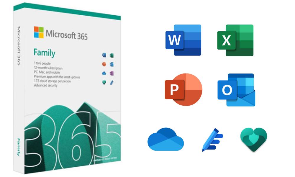 Microsoft 365 Family includes up to 6 TB of cloud storage (1 TB per person), advanced security features, and cutting-edge apps for you and your family, all in one package.